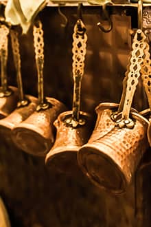 Mardin, yerel olarak üretilen yüksek kaliteli bakırları ile ünlüdür. Diğer birçok bakır eşyanın yanı sıra bakır kahve fincanları ve bakır tepsileri kullanmak için ya da aksesuar olarak satın alabilirsiniz.